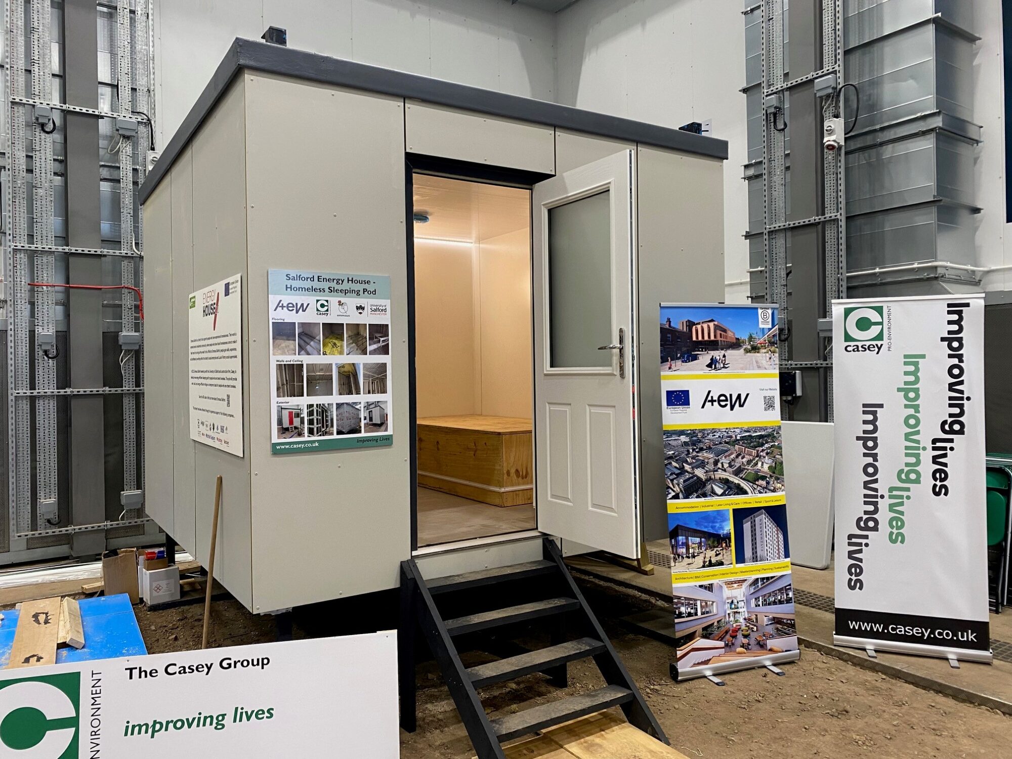 “Our unique Energy House 2.0 facility will have many uses, working with house builders and industry to help improve the efficiency of all our homes. But it can also be used for things like this to help give back and provide real benefits to the local community. We are proud to work with Emmaus to help develop better solutions for the homeless to help them keep warm in the colder months and will provide a stepping stone to a more stable future.”