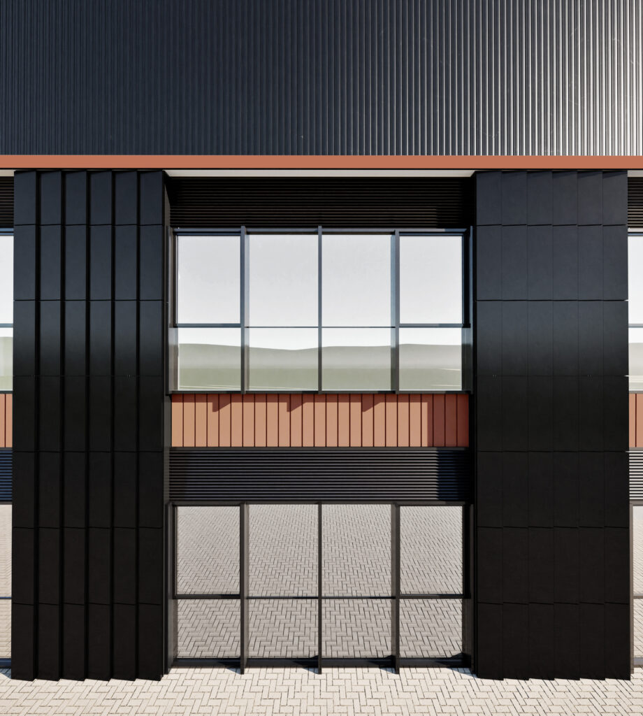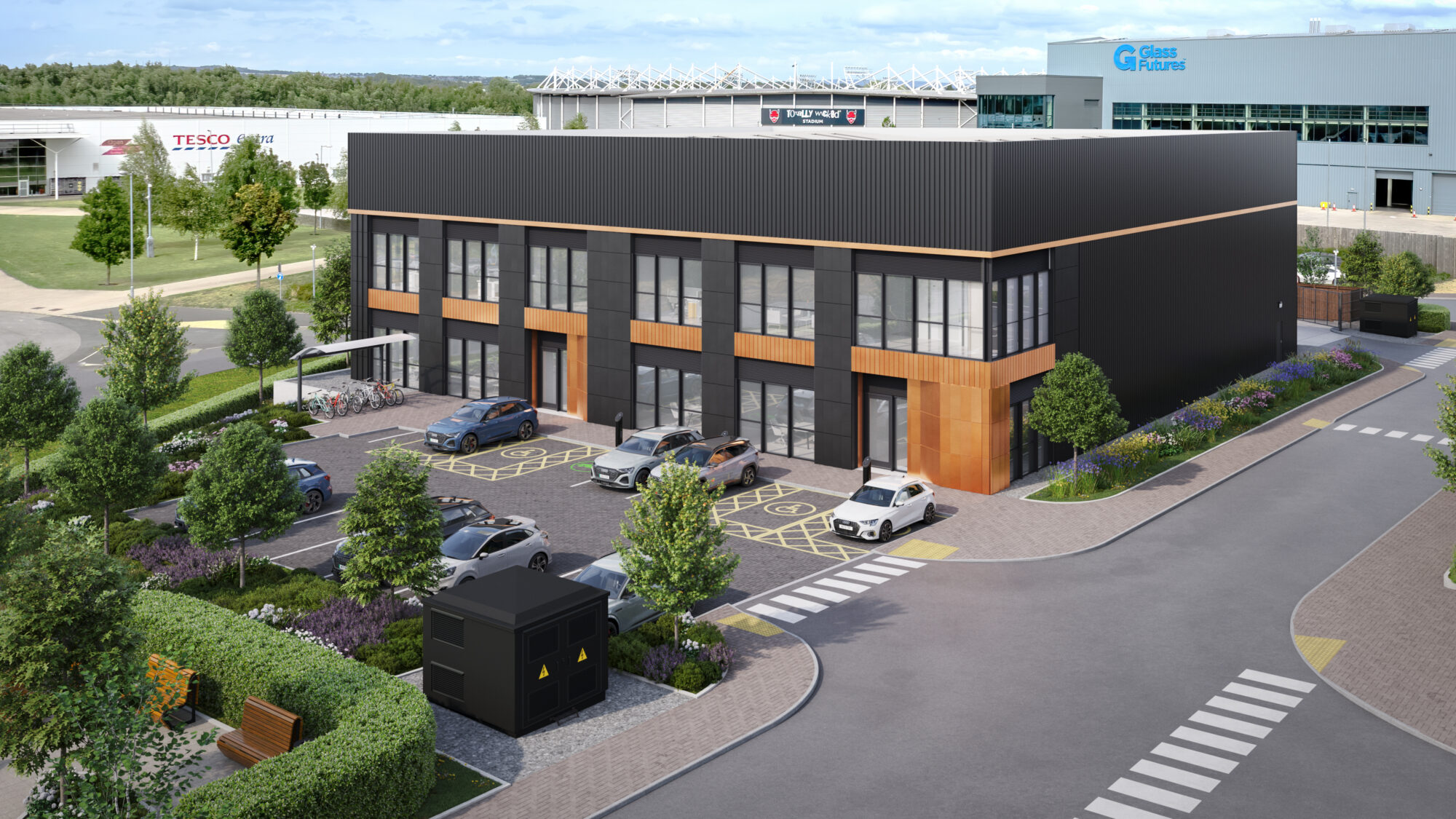 The final proposals deliver four ‘Tech Box’ buildings, 2 of which are subdivided to create 6 units ranging from 7,600 to 25,920 sq ft. Together they form a cohesive yet flexible advanced manufacturing hub. Each unit combines institutional-grade industrial space with high-quality office and laboratory frontages, creating a development that is both functional and distinctive.