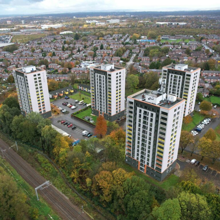 Our retrofit works spans our specialist sectors and includes recladding residential towers like Fitzwarren Court and Albion Towers in Salford to the refurbishment of industrial units for Network Space at Broadheath Network Centre, Altrincham.